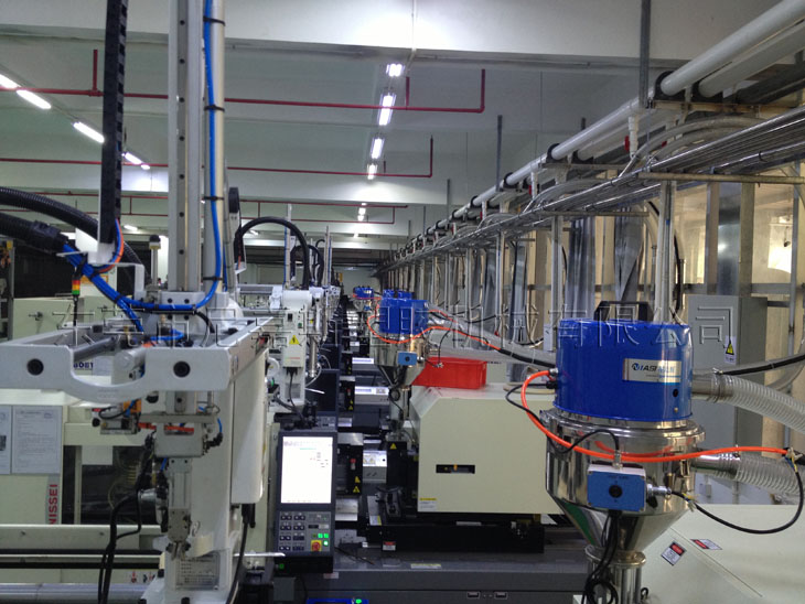 中央供料系統(tǒng)是根據(jù)客戶現(xiàn)場機臺的擺放情況對現(xiàn)場原料的用料情況,結(jié)合特有輔機設(shè)計備而設(shè)計的一種能夠?qū)崿F(xiàn)集中供料、集中控制,從而實現(xiàn)全廠無人化不間斷成型作業(yè)的整體性解決方案。