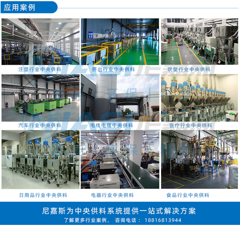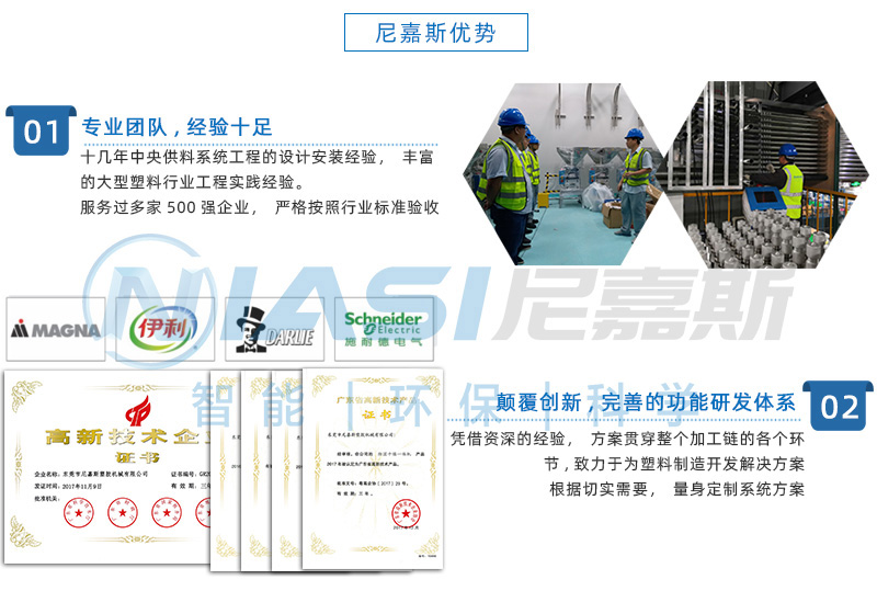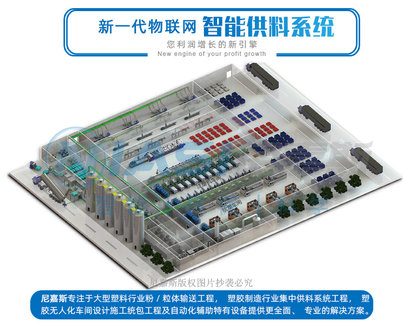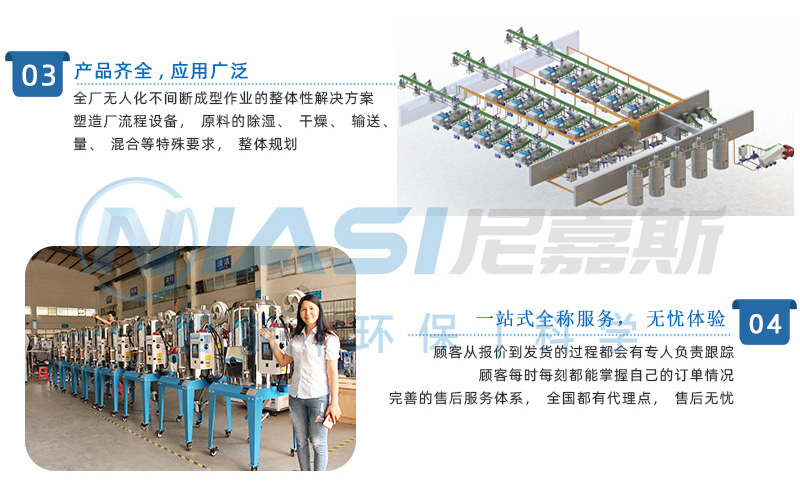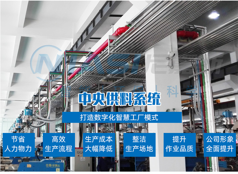是根據客戶現場機臺的擺放情況對現場原料的用料情況,結合特有輔機設計備而設計的一種能夠實現集中供料、集中控制,從而實現全廠無人化不間斷成型作業的整體性解決方案。
