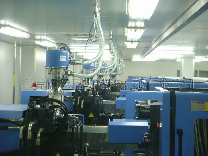 中央供料系統采用真空傳送方式,通過集中的管路系統將塑料原料從儲料罐輸送到中央除濕干燥系統,然后將干燥后的原料輸送到每臺注塑機中。中央供料系統采用“一臺機器一根管”的設計方式,保證整個系統的空氣對原料進行輸送,防止除濕干燥后的原料回潮。同時在每個輸運行穩定,絕無堵料的現象發生。它配合中央除濕干燥系統使用,可使用除濕干燥送循環后會對輸送管線進行清理,確保管路內沒有殘余的粒料,在避免原料回潮的同時,也保證了加入注塑機中的原料性能的一致。在真空負壓作用下原料中原由的粉塵會通過粉塵過濾系統被過濾出來,有助于提高成型產品的質量。