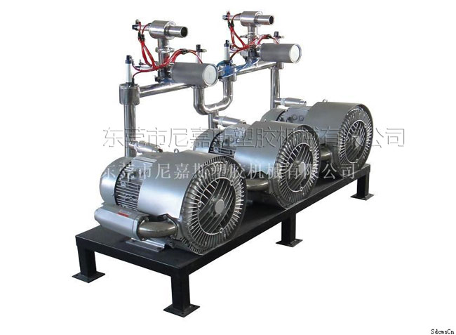 在中央供料系統中,真空站主要提供原料輸送時所需的負壓動力,真空站的啟停由中央控制臺自動控制,并且與系統中的中央集塵器、機械式吸料斗、原料切換站等配合使用。
