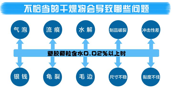 在塑料加工業(yè)中,塑料在粟脂狀時極易從空氣中吸收水分,也就是說,在貯藏和加工前所吸收的水分會嚴重影響最終成型產(chǎn)品的質(zhì)量,如尼龍、聚碳酸酯等等。即便是非吸水性的塑料對表面的濕氣污染也很敏感(水份集聚在塑料顆粒表面),所以在加工之前應(yīng)對塑膠進行適當?shù)某凉窀稍锾幚恚员WC產(chǎn)品得到最佳的成型效果。