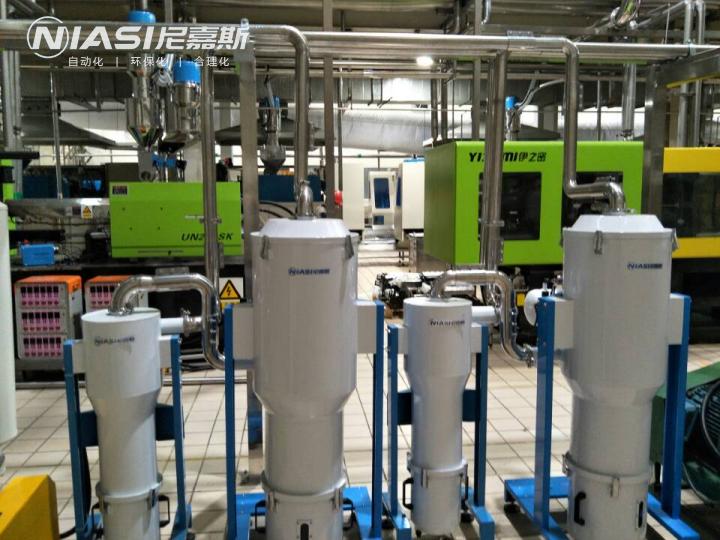 輸送系統(tǒng):根據(jù)客戶提供的輸送量、輸送距離等參數(shù),我司通過真空料斗將原料輸送到干燥機(jī)后輸送到注塑機(jī)上,每臺機(jī)的用料量不同用料種類相同。