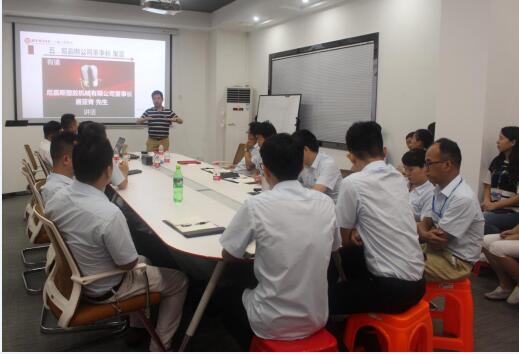 8月16日,東莞市尼嘉斯塑膠機械有限公司在總部召開公司管理升級項目總結暨持續升級啟動大會,參加此次大會的有尼嘉斯董事長唐生、總經理李生、廣東正睿企業管理研究院金濤教授及尼嘉斯塑膠機械有限公司全體員工。