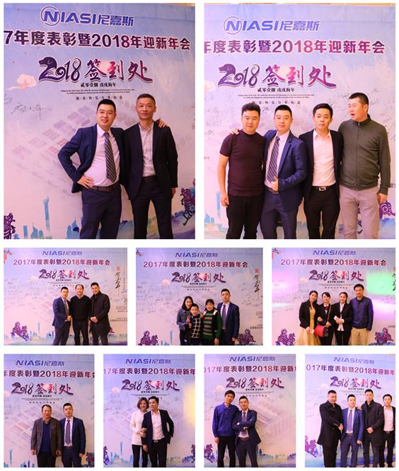 年會盛典開始前,經銷商們、尼嘉斯員工家屬、深度合作企業代表員工紛紛來到“尼嘉斯2017年度表彰暨2018年迎新年會”簽到墻簽到,為2018年留下新年光輝的一筆!