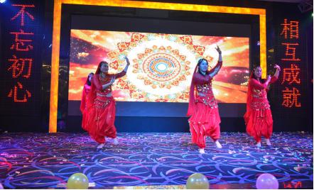 年會盛典在舞蹈《不如跳舞》中拉開了序幕,歡快的舞姿,明朗的節奏、交錯的光影,展現出尼嘉斯大家庭積極向上的朝氣,融入了對尼嘉斯更蓬勃的美好愿景。而將晚會氣氛推向高潮的,當屬由尼嘉斯人自導自演的《阿拉伯之夜》,驚艷全場。